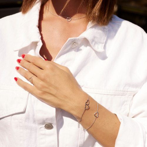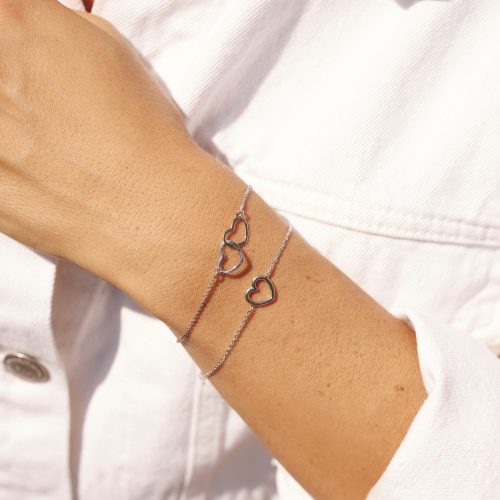 Double Heart dupla kontúrszív 925-ös sterling ezüst karlánc, amely az összetartozást és az élet szeretetét jelképezi. Tökéletes, finom kiegészítő.