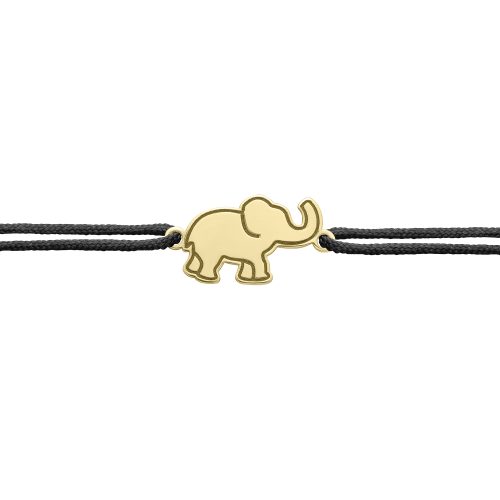 Elefántot formázó medálos sterling ezüst karkötőnk 18k Arany bevonattal, amelynek felfelé álló ormánya a szerencse jelképe. Választható fonalszínnel.