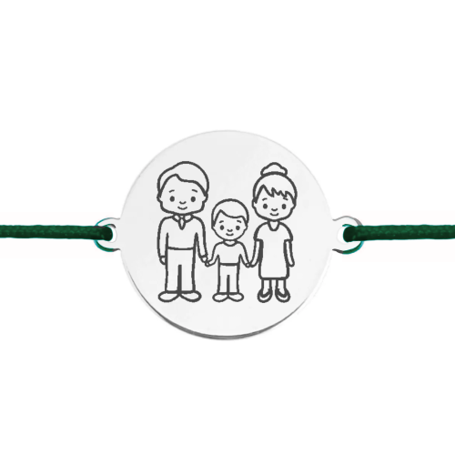 Lézergravírozott karkötőnk medálja Sterling ezüstből készül, és egy háromtagú családot ábrázol, kiváló ajándék az összetartozás jelképeként.