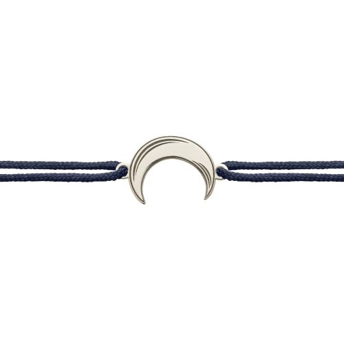 Fedezd fel Moon medálos sterling ezüst karkötőnket, amely egy félholdat formál, a változást és növekedést jelképezi. Választható fonalszínnel.