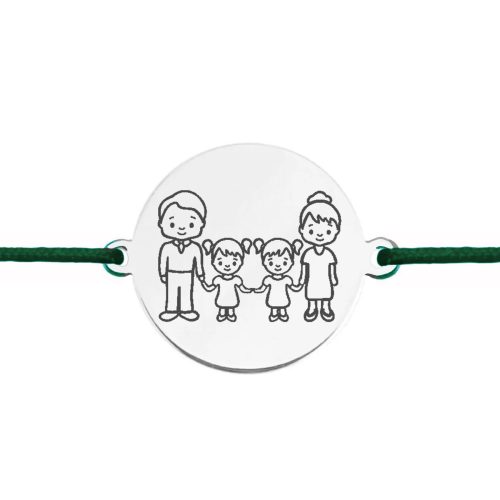 Lézergravírozott karkötőnk medálja Sterling ezüstből készül, és egy négytagú családot ábrázol, kiváló ajándék az összetartozás jelképeként.