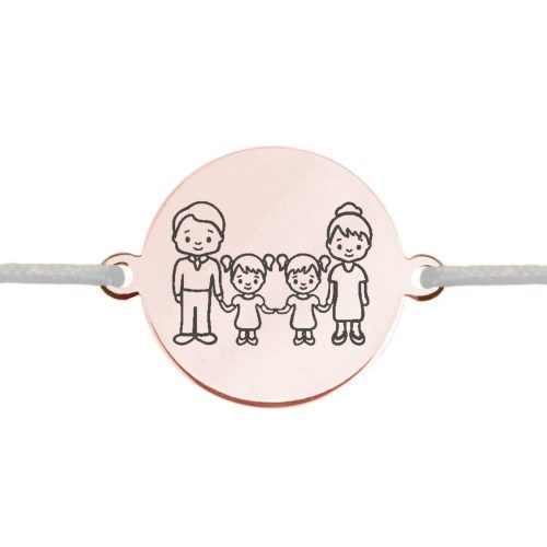 Lézergravírozott karkötőnk medálja Sterling ezüstből készül 18k Rosé Arany bevonattal, és egy négytagú családot ábrázol, kiváló ajándék az összetartozás jelképeként.