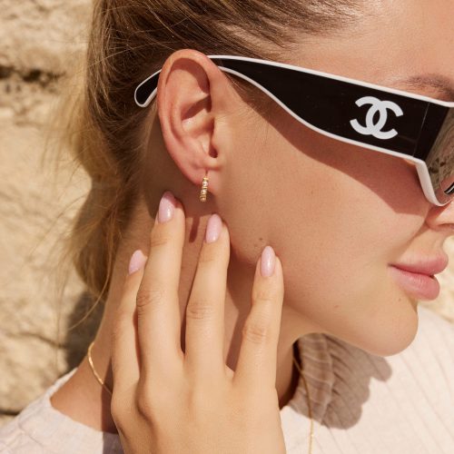 Kis gyöngyökkel kirakott 18k Arany bevonatos Sterling ezüst karika fülbevaló a különlegességet keresőknek. Egyediség a mindennapokra.