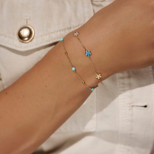 Fedezd fel a természet erejét ezzel a különleges Ezüst karlánccal, amelyet apró türkiz ásványkövek díszítenek. A védelem és egyensúly köveként ismert.